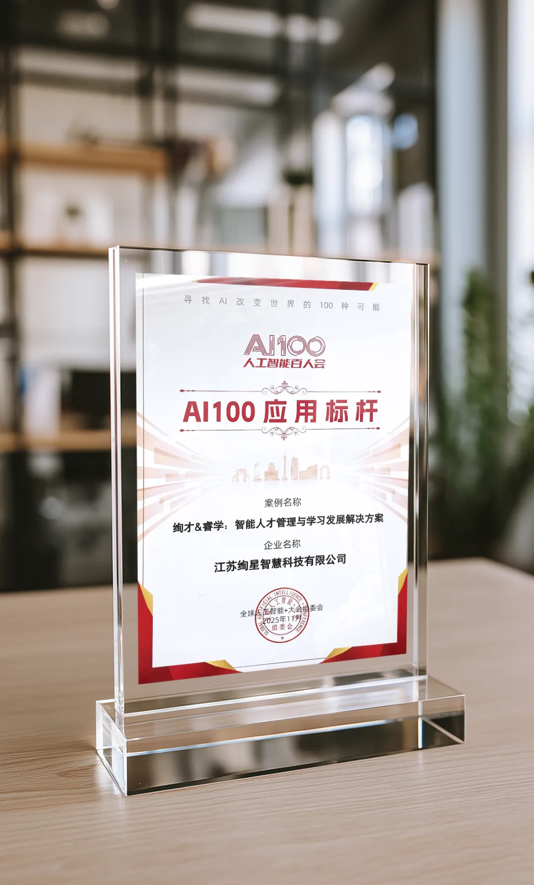 11月16日,在北京举办的“全球人工智能+大会”上,绚星智慧科技凭借其在企业人才发展领域的卓越贡献和应用落地能力,成功荣登极具行业影响力的“AI100应用标杆”奖。