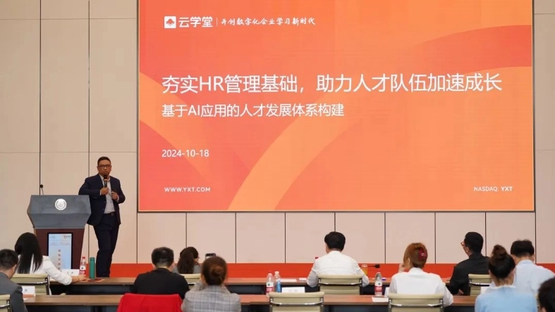 在数字化时代,企业大学建设是企业发展的重要战略支撑。云学堂老客华东大区总经理林小晶在现场从企业大学建设方面进行了深入探讨,并特别强调了在AI时代,传统的培训将被“重塑”,借助AI,培训可以从“规定动作”变成“可见效果”。